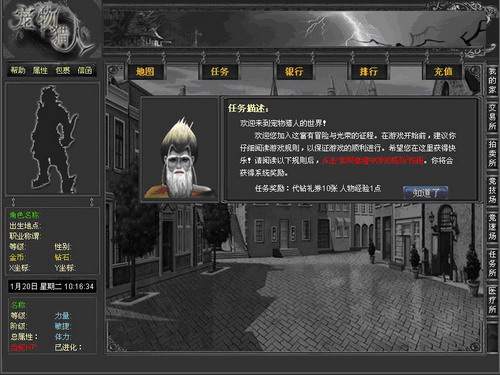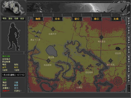 游戏中常用的主要功能按钮:地图、任务、银行、排行、充值