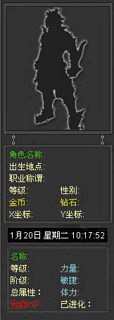 上面的图为你的人物当前形象图:点击可显示人物详细属性