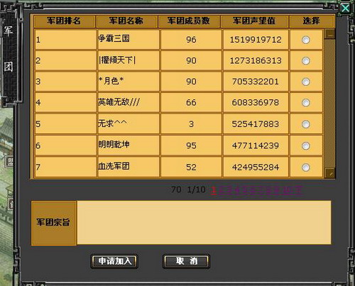天剑:我是进入了争霸三国家族和军团,刚进时家族和军团排名在30名左右,通过我和团长、还有全体成员的努力在一个月里迅速升到前十,通过认可当上了家族族长和副团长,现在我们家族和军团当之无愧的成为1区第一了。确实很累,家族和军团的大小事务基本都要负责,因为军团团长已经不管军团事务了,游戏角色还在挂名团长,这个是对他的以前工作的认可和怀念。