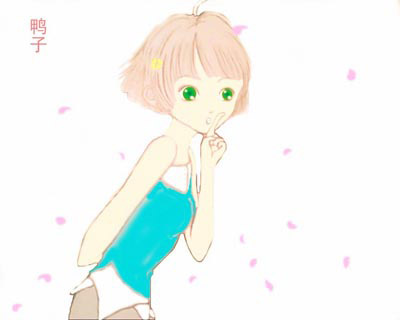 下面这位绿意盎然的小MM是鸭子!画这幅画的时候很有感觉。前两天她说过要回中国**,好担心能不能在她走之前完成这次的作品,因为她也不知道回到那里后能不能再接着玩了哪,我还是没有来得及,可谁知……