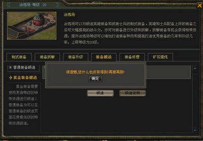 如果锻造失败,系统会给予提示,点击确定后直接跳转黄金装备锻造的原始页面。