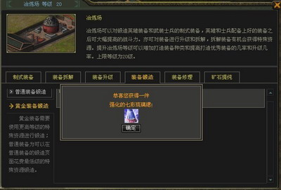 锻造成功将有提示,可以去宝物栏的装备里查看。强化装备是黄金装备里属性普通的装备,往上还有无暇装备、完美装备。