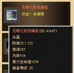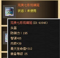 通过图示,我们可以清楚的看到在属性上它们是有很大的区别的。强化、无暇、完美装备,名字、等级都相同,但无论在防御力、智谋、内政和生命值上都是呈现递增效果。