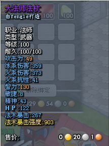 首先我们说一下攻击型的,攻击性武器属性除了基础属性以外它额外增加了智力精神等属性点的加成,大家都知道人物分配比例中这些都是可以增加基础攻击力的属性项目。而后还增加了直接的法术暴击以及暴击强度的项目,直接的增加了武器的攻击力,让法师的攻击如虎添翼。