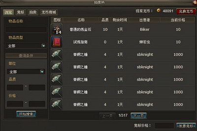 除了打劫和占领野外资源,拍卖系统绝对是最最来钱的道儿。在游戏中,每一个玩家都是一名商人,可以将自己在游戏中所获得的各种东西放在拍卖所里拍卖,包括各种游戏道具,极品装备等。玩家通过拍卖所的交易,可以获得大量的龙币,而你则可以用这些龙币购买各种游戏道具来提高资源的收益。