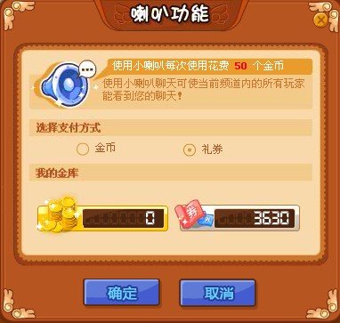 新一批的装备就产生了。II礼券还可以用来刷喇叭喊话,在“游戏大厅”状态下,左下角聊天窗口处点一下三角箭头就可以选择喇叭频道。