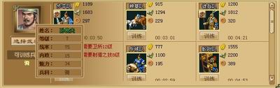 训练兵种时也可以注意一下该兵种的数值,防御值最低的兵种即是被克兵种,无论在国战还是中立郡中的个人战,派遣相克的兵种应战自然是能事半功倍。