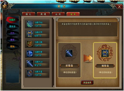 装备继承可以一件装备的强化等级转移到另一件装备上,