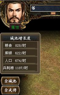 而且,《office三国》针对玩家最需要的关键数据,也就是主要资源的增长与消耗,在屏幕的左上角,玩家头像下方,还有一个“城池增长度”窗口来显示粮食、库银、人口等增长数据,让你一目了然。