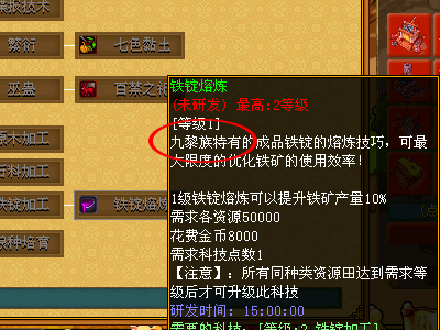 进入城外的领土后,可以看到4单元伐木场,4单元采石场,4单元铁矿场和6单元耕地,这些就是资源点了。玩家必须合理的提高这些资源点的级别,以便获得更高的资源产量。由于初期可供投入开发的资源优先,所以推荐同类资源保证级到一级。有一个例外,那就是你要离开电脑很长一段时间的话,如果资源足够则可以升级高级资源点。