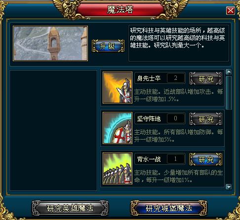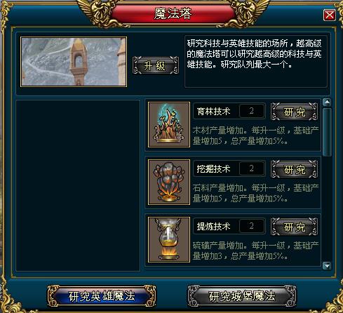 魔法塔对于每个种族来说都是最为重要的建筑,其主要用途就是提升资源产量、加快征兵和建设速度、节约成本、提高仓库储量等,而且英雄的各类主、被动技能也都是在这里研究。