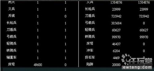 首先冲车前进1回合,其他全防,床弩选择攻击对像,顺序如下:先轻骑,铁骑,长枪,刀盾兵,最后是义兵,第二回合冲车也选择防,就这样把近身兵种都杀完,由于这次刀盾兵太多,导致冲车死了7247。     1占就这样完成了。等关羽回来后接着第二回合1掠。