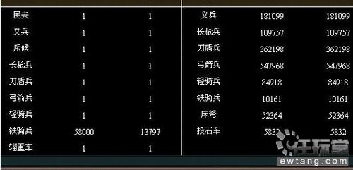 接下来的是1掠清所有兵种了,此次所需兵力如下:铁骑兵58000,其他各1当炮灰