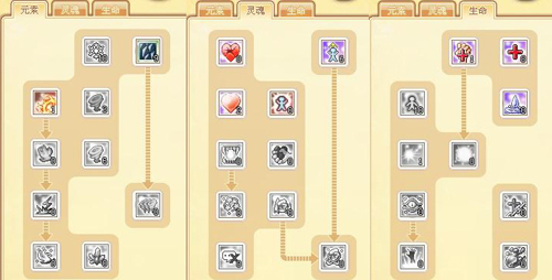 首先,大家要知道《美眉梦工场》的战斗技能,是由三部分构成的:元素、灵魂、生命。元素多为攻击技能;灵魂多为控制及辅助技能;生命多为治疗及保障技能。