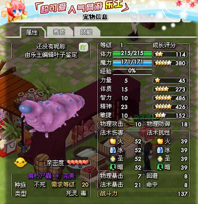 拥有足够的资本你才能在前期捕捉更多的宠物更快的积累资金发展壮大,拥有强大的人品你才能开出更多极品的宠物。这两项缺一不可,只具其一的话也许你在《乐土》中能够富足的生活,但是远远达不到成为巨富的条件。