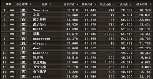 Sunshine:“白”势力目前除了几个实力强的,其他人已经被我们遏制了。形势估计跟国际服的差不多,前30名大多是最强公会的,后面就是各个其它公会的天下。《掘掘帮》这个游戏在不同的排名有不同的玩法,排名在50以后是另一个世界,200名以后更是不同……
