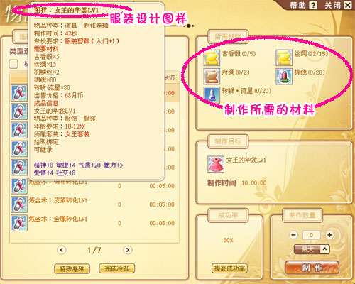 在拍卖行或者战斗当中得取材料,花费时间合成加工衣服,赚取加工费!