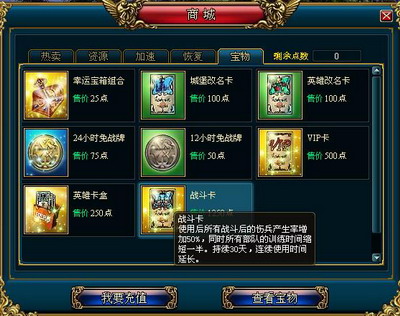 VIP卡,不用说,必备道具之一!训练队列卡,加快你的造兵速度;战斗卡,新加入的极品,没这卡之前不知道怨死多少部队,它能让你减少一般的伤亡,并且减半训练时间;辅助道具可以考虑英雄卡和资源礼包,毕竟英雄也是战斗的决定因素之一。
