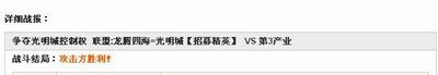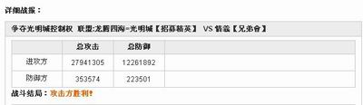 最后引用下禁忌沼泽@龙腾四海盟主小天使的话:“各位盟友兄弟姐妹们:大家辛苦了,今日方知我盟强大的凝聚力,经验金币均无所谓,今日之荣耀可载入史记。”攻城战开放后,拿下主城,意味着下次将面对更多联盟的攻击,打江山容易,守江山难。让我们期待以后更加精彩的攻城战!