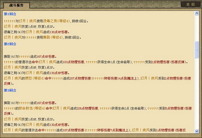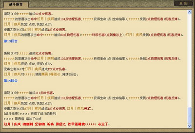 接下来是整个战报内容,激烈的战斗中,玩家可以随时研究对方的战斗方式和和战术安排。为以后的PK赚取足够的经验才能真正的所向披靡!
