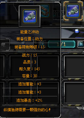能量部件主要是增加AP 的,它的固定属性是:储能加成,目前最高见过加成5%。