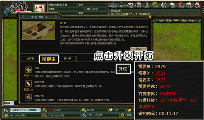 进入学府防御系页面,点击升级开拓,可以提升一定土地.