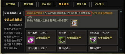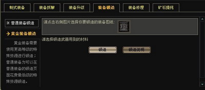 普通装备打造:普通装备打造是不能用带等级的特殊资源,就是普通资源的用来打造。打造出来的基本属性是随机的。