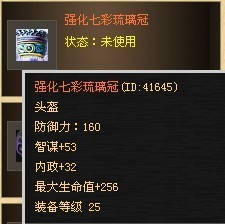 通过图示,我们可以清楚的看到在属性上它们是有很大的区别的。强化、无暇、完美装备,名字、等级都相同,但无论在防御力、智谋、内政和生命值上都是呈现递增效果。