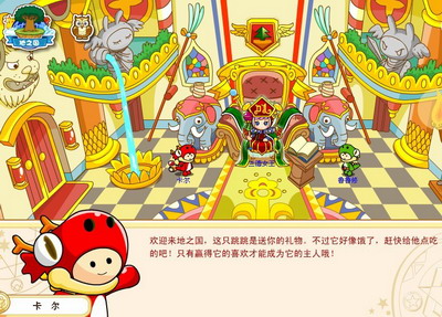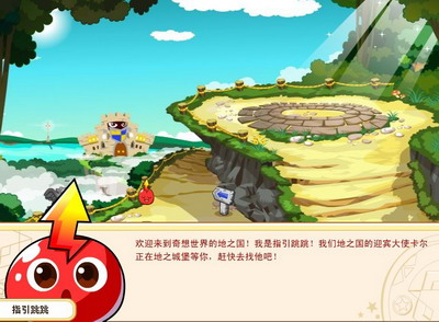 初来乍到的小勇士,按箭头指引方向去地之国地之城堡找迎宾大使卡尔吧!他会告诉你更多奇想世界的秘密!