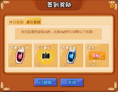 C.每日签到也是有礼券送的,累积签到,天数越多,奖励越丰富.