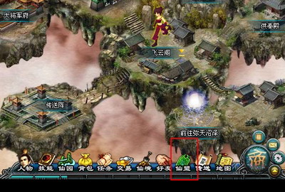 进入游戏页面,在底排操作栏上,可以看见【仙盟】系统的进口。