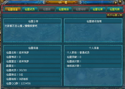加入仙盟后,可以看到仙盟信息、仙盟成员、仙盟战、仙盟商店、仙盟地标、仙盟仓库、仙盟列表6个功能键。其中【仙盟战】【仙盟地标】正精心准备开通,参加仙盟战,有机会获得丰厚的道具奖励。而参加仙盟地标战,有机会获得药园种植加成。相信不久以后,这两个系统就可以让玩家亲身体验了。