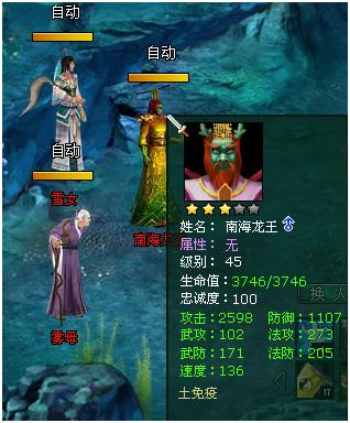 第10层:守层BOSS--南海龙王,带领着雪女和雾母捍卫着龙宫的尊严。南海龙王对于所有土系的伤害统统免疫,雪女和雾母大家在前面已经见识过了,全都是不容小视的角色。得到了南海龙王的认可,从右面进入到11层。
