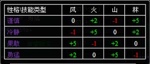 部将 性格 技能效果 绝学 步将 谨慎 林系+5 林燕诀 +闪避率步将 冷静 火系+5 流炎斩 +攻击率步将 果敢 风系+5 凌风刺 -被攻率步将 勇猛 山系+5 傍山御 -被攻率弓将 谨慎 林系+5 屠林诀 +暴击率(独有)弓将 冷静 火系+5 赤焰箭 +攻击率弓将 果敢 风系+5 毒风矢 +攻击率(持续)弓将 勇猛 山系+5 傍山御 -被攻率器将 谨慎 林系+5 钟林律 +命中率器将 冷静 火系+5 炬星石 +攻击率器将 果敢 风系+5 闪风击 +攻击率(持续)器将 勇猛 山系+5 傍山御 -被攻率骑将 谨慎 林系+5 林燕诀 +闪避率骑将 冷静 火系+5 踏火袭 +攻击率骑将 果敢 风系+5 汲血突 +攻击率(转化)骑将 勇猛 山系+5 傍山御 -被攻率车将 谨慎 林系+5 钟林律 +攻击率车将 冷静 火系+5 奔火势 +攻击率车将 果敢 风系+5 缚风式 -敏捷率车将 勇猛 山系+5 傍山御 -被攻率勇士全能····大家知道的本人觉得最佳搭配一线:步谨慎+林燕诀 +闪避率 弓谨慎+屠林诀 +暴击率(独有)器果敢+闪风击 +攻击率(持续)二线:步冷静+流炎斩 +攻击率 弓果敢+毒风矢 +攻击率(持续)器谨慎+钟林律 +命中率个人觉得:最佳配置 步谨慎 弓谨慎 器果敢 弓果敢 器谨慎希望大家多给建议 至于其他不足可以用宝石代替弥补 跟大家交流一下个人的统计分析 希望能借点大家专业性的建议!!大家多扔砖头啊 QQ交流群107748636
